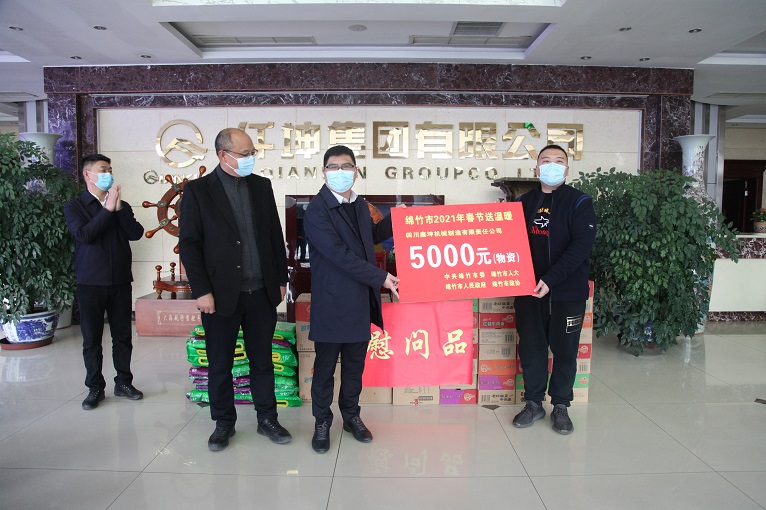 在集團(tuán)一樓大廳,耿垣合市長為集團(tuán)送來了春節(jié)慰問物資,同時(shí)為“全國勞模”集團(tuán)旗下鑫坤機(jī)械汽配車間主任趙霞榮同志送來慰問金,耿垣合市長對趙霞榮同志獲得“全國勞?!狈Q號表示祝賀。并對集團(tuán)為我市經(jīng)濟(jì)發(fā)展做出的成績表示感謝,希望繼續(xù)不斷創(chuàng)新為我市實(shí)現(xiàn)一季度開門紅作出貢獻(xiàn)。同時(shí),耿垣合市長代表綿竹市委、市政府對全體集團(tuán)員工致以新春的祝福和誠摯的慰問。