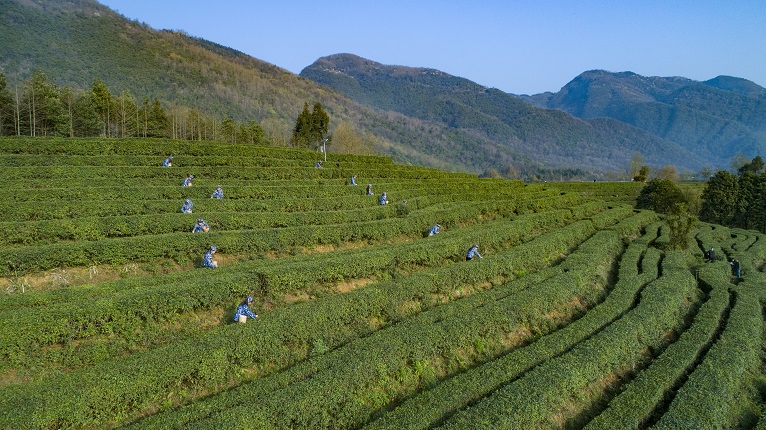 綠水映青山,青山育好茶,放眼望去,茶山上茶樹(shù)層層疊疊,郁郁蔥蔥,茶山又遇一年暖春,田壟又是一片繁忙。