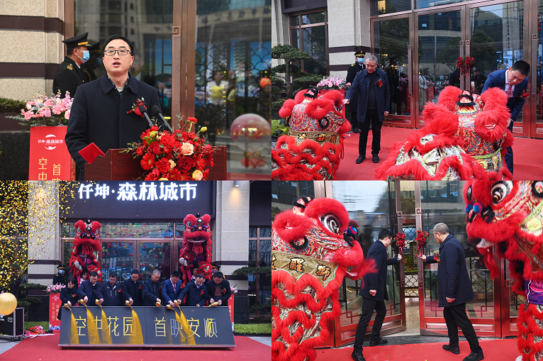 舞蹈《瑞獅鳴潮》拉開亮相儀式序幕,激昂的鼓點歡快的節(jié)奏將現(xiàn)場的氛圍點燃,寒冷的天氣也阻擋不了現(xiàn)場嘉賓的熱情。集團黨委書記、副總裁周述軍致辭之后,集團董事何述林和黎小東總經(jīng)理手持朱砂毛筆為舞獅點睛,寓意祥和旺財、點石成金?,F(xiàn)場嘉賓將鎏金倒向牌匾“空中花園 首映安順”赫然出現(xiàn),嘉賓伴隨著舞獅進入森林城市銷售中心,華麗的展廳內(nèi)全景沙盤映入眼簾,銷售經(jīng)理做著介紹,參觀的嘉賓絡(luò)繹不絕現(xiàn)場好不熱鬧...