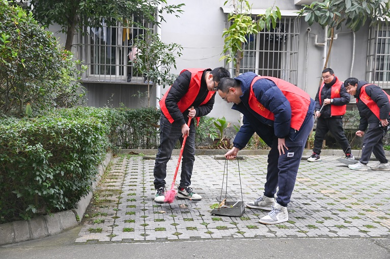 上午10點仟坤青年志愿者們分成多個小組,大家?guī)鲜痔?、手持掃把、拾物鉗等工具,開始了對整個公租房小區(qū)內(nèi)的清潔工作,一個個紅色的身影穿梭在小區(qū)的各個角落,大家神情專注,動作矯健??葜β淙~、煙蒂紙屑等垃圾被一掃而空。