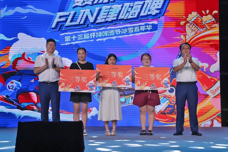 8月9日19:30,主持人登場進行了簡短的儀式后,通過視頻連線貴州安順啤酒節(jié)分會場,共同見證仟坤啤酒節(jié)開幕的盛況!首先是由綿竹市副市長陳軍代表綿竹市政府,向來自四面八方的來賓們表示最熱烈的歡迎。陳軍副市長表示,仟坤集團深耕綿竹24 年,推動了綿竹住房建設(shè)和物業(yè)管理水平的不斷提升,集團還為學(xué)子頒發(fā)獎學(xué)金,獲政府高度評價。啤酒節(jié)已是13 屆,是夏日盛會,并誠邀綿竹、安順啤酒節(jié)會場的所有來賓開懷暢飲,宣布第十三屆仟坤啤酒節(jié)正式啟幕!